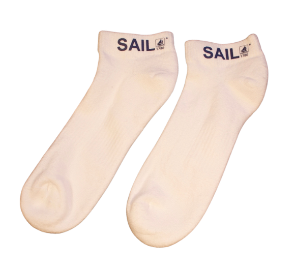 80% Cotton - 20% Polyester / Padded Footbed / Ankle Height / White with Navy Logo